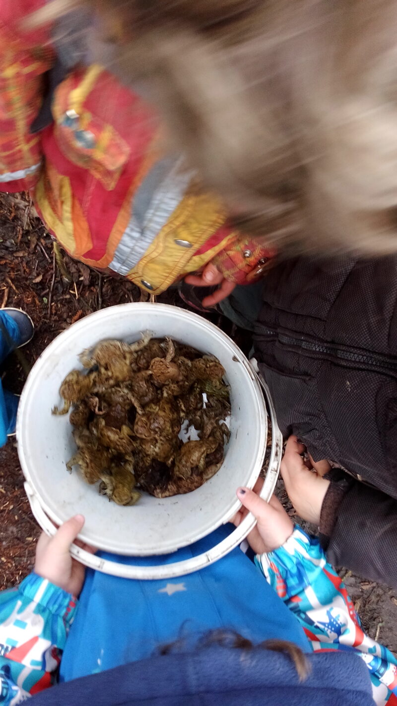 In 3 Einsätzen trugen unsere Kinder insgesamt über 100 Moorfrösche, Erdkröten und Teichfrösche über die Strasse. Dabei begleitete uns der Biologe Jonas aus Melchow, der allerhand Interessantes aus dem Leben der Amphibien zu berichten hatte. Inzwischen können einige Kinder schon recht gut Frösche und Kröten bestimmen.