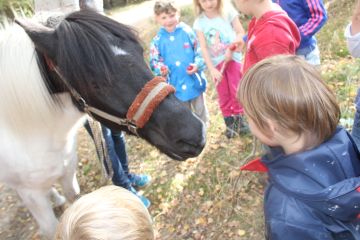 Die Kinder haben sich im Wald mit vielen roten Äpfeln und Streicheleinheiten von ihm verabschiedet. Da gab es schon mal einen feuchten Abschiedskuss von Gnyr auf die Nase.